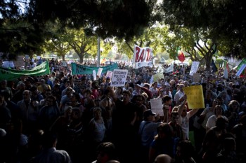 Na quinta-feira, a Plataforma 15 de Outubro apelou a que os cidadãos se manifestassem ruidosamente durante a reunião do Conselho de Estado.