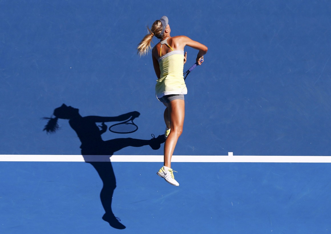 Maria Sharapova da Rússia venceu o jogo com a belga Kirsten Flipkens no Open da Austrália